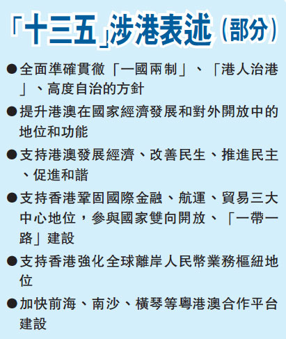 国家双向开放香港机遇多 “十三五”为港打下强心针