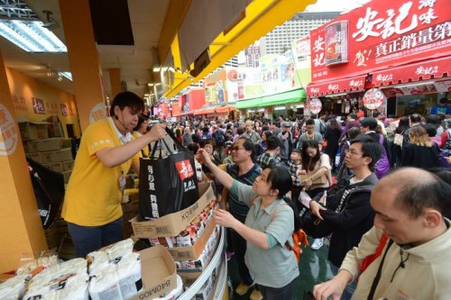 售卖原只熟食鸡只的广东裕丰负责人表示,今年第5年参加工展会,摊档主要出售原只少爷鸡、盐水鸡及盐焗鸡,去年平均每日卖出3、400只,今年每日仅卖出200只,生意十分差,至昨午仍有近一半存货尚未出售,故将3款食品减价,希望尽量散货。