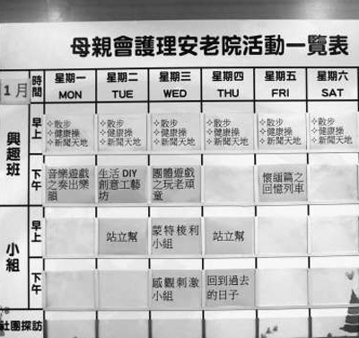 百闻不如一见。3月初的一个上午,记者走访了位于一幢商业写字楼二楼的母亲会护理安老院,这里1200多平方米的屋舍及主要设施是由政府资助的。母亲会是一家具有50多年历史的非营利慈善组织,目前开设了3家托儿所,安老院和护理安老院各一家,还有一家为55岁以上老人提供活动场所的耆康中心。