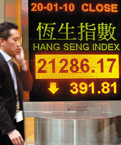 中新网1月21日电 据香港《文汇报》报道,恒指20日收报21286点,跌391.8点,成交752亿元。A股同样下跌,上证跌95点报3151.8点,跌幅近3%。国指则跌2.5%,报12,282点,劲跌318.6点。