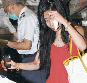 其中1名伤者被玻璃碎片割伤面部,登时血如泉涌,送院时浑身染血,现场遗下大摊触目惊心血渍及血鞋印。