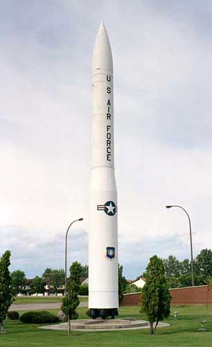 “民兵”-3导弹是美军陆基战略核打击力量的中坚,并将服役到2020年左右。这是美国第一种配有分导式多弹头的洲际弹道导弹,从1970年开始装备美国空军。该导弹采用NS-20全惯性制导式子弹头,每个母弹内装有3枚子弹头,动力装置为三级固体火箭发动机,由固定的地下井发射,射程9800-13000公里。