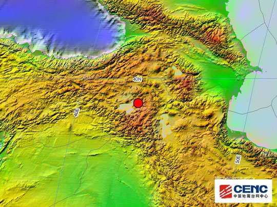 中新网10月23日电 据中国地震台网中心网站消息,北京时间23日18时41分,土耳其发生里氏7.3级地震,震中位于北纬38.8度、东经43.5度,震源深度10公里。