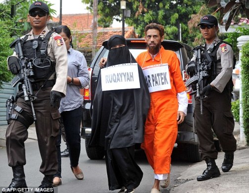 一组照片显示,帕特克与妻子在警方押送下重回爆炸案现场,协助构建犯案过程,两人胸前挂着大大的写有他们名字的纸牌。帕特克穿着橙色囚衣,其妻子则穿着遮脸的伊斯兰罩袍。其中一张照片显示,帕特克手搭在妻子肩上,面带笑容,露出牙齿。想到他这个“双手沾满鲜血”的凶犯杀人后还能轻松微笑,令人“不寒而栗”。