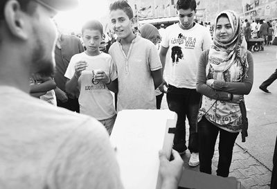 烈士广场,不再是遍布的绿色旗帜,也没有了四处巡逻的警察,这个曾经被称为“绿色广场”的国家象征所在,游人如织,昔日卡扎菲讲话的高台上,摆放着年轻人弹唱的吉他和喇叭。