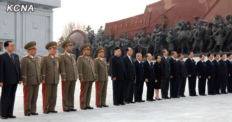 朝为金日成金正日铜像揭幕 金正恩出席仪式(图)