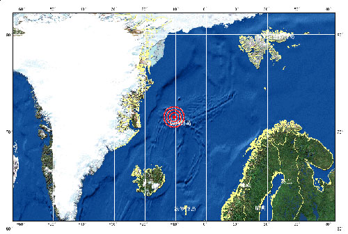 中新网8月30日电 中国地震局网站消息称,据中国地震台网测定,北京时间2012年8月30日21时43分在扬马延岛地区(北纬71.5,西经10.6)发生6.6级地震,震源深度10公里。