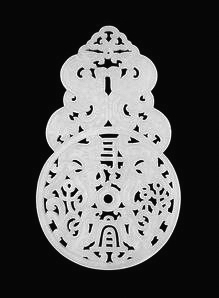 “长宜子孙牌”挂件高13厘米,通体镂雕,“长宜子孙”四字呈上下左右排列,周围环饰两对翔凤,估价为6万-10万英镑(约合60万-100万人民币);“兽面纹提梁卣”的估价为4万-8万英镑(约合40万-80万人民币)。