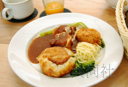 图为本月7日在列车试乘活动中推出的鹿儿岛县产黑猪肉肉饼等菜品。