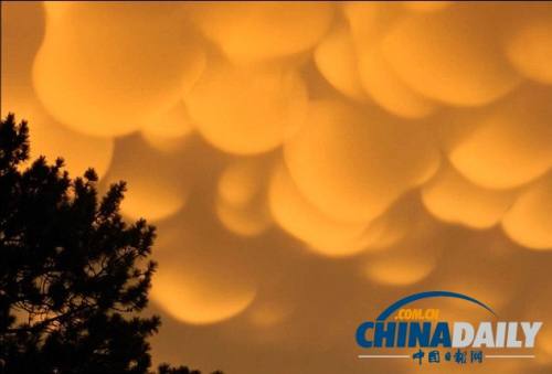 美一州出现罕见橙色“乳房云” 或预示龙卷风(图)