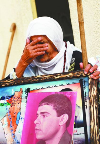 28日,在加沙的沙提难民营,被关押在以色列22年的巴勒斯坦囚犯法里斯·巴鲁德的母亲拉娅听到儿子可能被释放的消息后,流下眼泪。新华社/法新