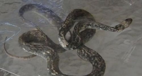 福森将蛇装入袋子,给参加聚会的客人看。那成了热点话题,他显然很高兴谈论自己的奇怪发现。福森说:“幸运的是,它没有跑出来咬人。”