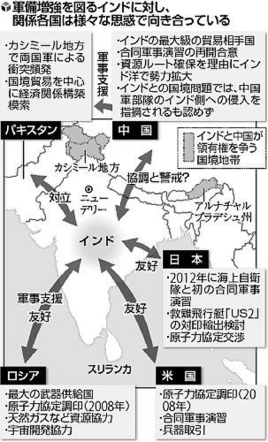 图为日本媒体绘制出的印度国际形势示意图