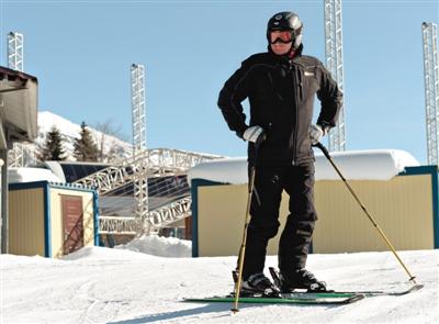 1月3日,俄罗斯索契,俄罗斯总统普京视察索契冬奥会设施期间在体育场馆里滑雪。