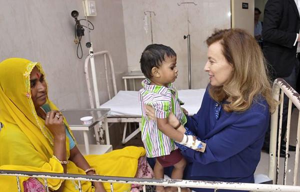 法前第一女友瓦莱丽·特里埃维勒在孟买探访儿童医院