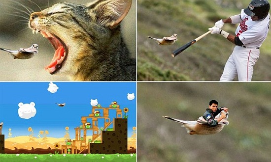 莱恩这才发现,自己拍摄的红隼“火”了。由于其奇特的姿态,网友对这只红隼进行了种种恶搞。网友不仅把这只小鸟PS到了卡通片上,还把它PS到了“愤怒的小鸟”游戏中。