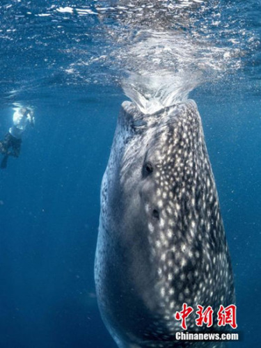 这头25吨重的大家伙当时正在吸食水中的微生物,它张开的嘴巴就像是宇宙中的黑洞,潜水者们差点都被吸了进去。