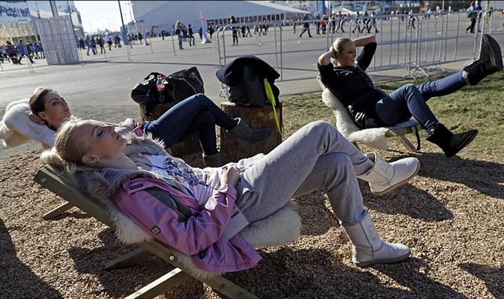 索契气温持续升高 冬奥会运动员晒日光浴(组图)(4)