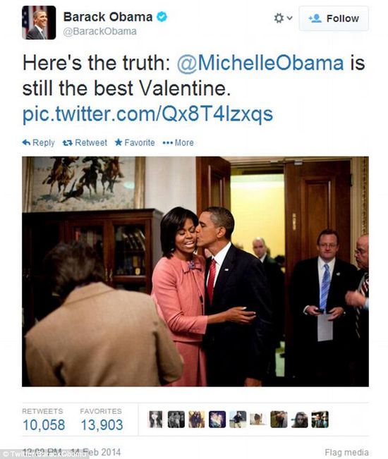 奥巴马夫妇情人节分隔两地 网上大秀恩爱(组图)