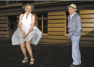 图为84岁的INGEBORG GIOLBASS和88岁的ERICH ENDLEIN扮成电影《七年之痒》中的人物