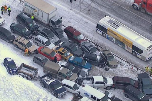 安大略省警方发言人伍德福(Dave Woodford)表示,受暴风雪影响,加拿大400号公路(Highway 400)的南向道路上,发生96辆车的连环车祸。