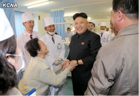 图为朝鲜最高领导人金正恩视察医院。