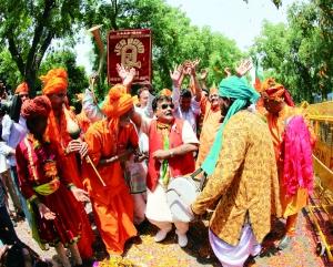 莫迪的母亲随后在莫迪额头上点朱砂并喂糖给他。