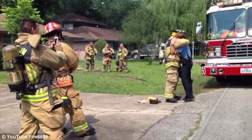 中新网6月10日电 据外媒报道,近日,来自美国休斯顿的一名消防员杰西为向其警察女友求婚,不惜求助警察局和消防局伪造出火灾现场,待女友赶到时给其一个惊喜。