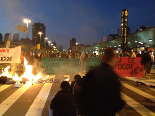 据巴西《圣保罗页报》6月9日报道,距离世界杯开幕不到3天的时间,巴西圣保罗市的地铁罢工仍在继续,造成市内交通混乱。上周日,圣保罗市地区法庭对此次罢工宣判,认为地铁工会滥用权力,非法罢工。昨日,圣保罗市政府以“非法罢工”为由,辞退48名地铁罢工人员,引得地铁工作者再次不满,集会抗议。