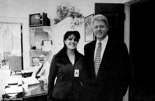 资料图:莱温斯基与美国前总统克林顿的合影。