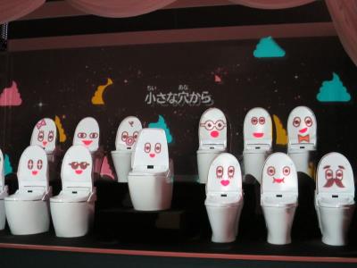 顺着游客动线,最后来到的展区可欣赏拟人化排排站的马桶高歌“厕所歌”。