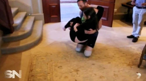皮斯托瑞斯举着一个女演员,演示其在发现女友中弹后将其抱起。(视频截图)