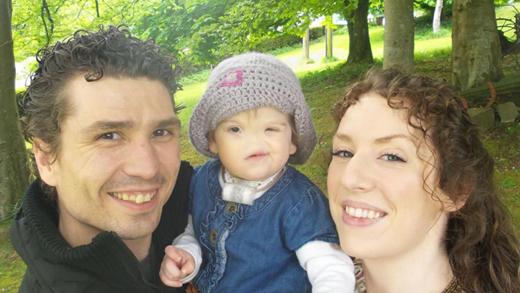 患有罕见的先天性无鼻畸形症的女婴泰莎·埃文斯和她的父母。