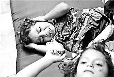 7月24日,在联合国学校避难的巴勒斯坦儿童在空袭中受伤供图/IC