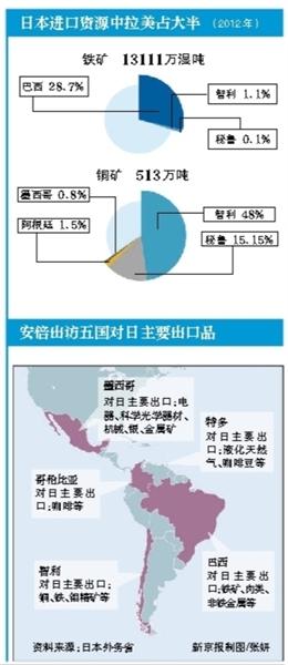 周永生表示,日本在拉美利益比较广泛,在巴西智利等国分别进口大量铁矿和铜矿,还在委内瑞拉进口石油,是拉美资源的需求者,是拉美国家出口的重要市场。