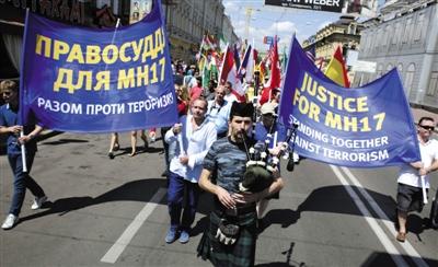 27日,乌克兰基辅,驻乌多国大使馆外交官、雇员及在当地的外国人举行示威,要求公正调查MH17被击落事件。