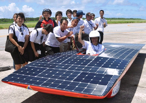 20日中午阳光充足时,筱塚建次郎驾驶一辆车身装满太阳能电池板的汽车,在冲绳县下地岛的机场跑道行驶。他曾于2008年开始参加太阳能汽车比赛,在本次打破世界记录后,他笑逐颜开地说:“为实现太阳能汽车在社会上实际使用的梦想,站在起跑线上我感到十分高兴。”