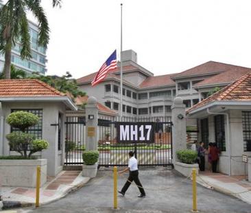 配合马来西亚政府宣布的全国追悼日,坐落吉隆坡市中心的美国大使馆降半旗向马航MH17客机罹难者致哀。