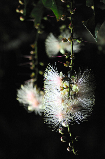 玉蕊属生于湿地的常绿乔木,夏季开出30至60厘米的下垂花穗。夜幕降临时,它们便悄悄绽放,待黎明时分便悄然闭合。