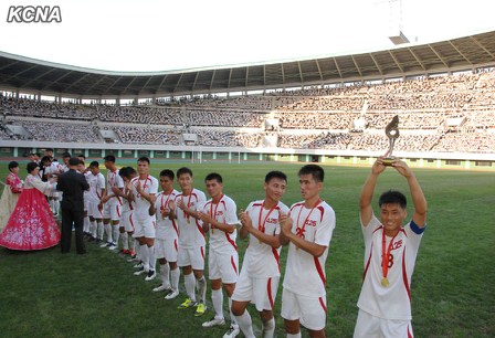 朝鲜举行火炬杯足球决赛 纪念青年节(图)