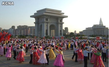 此外,朝鲜建党纪念塔、平壤体育馆、凯旋门广场等首都的各舞场也化作欢乐的海洋。与会者合着歌曲尽情跳舞,各道首府和市、郡也举行了青年学生舞会。