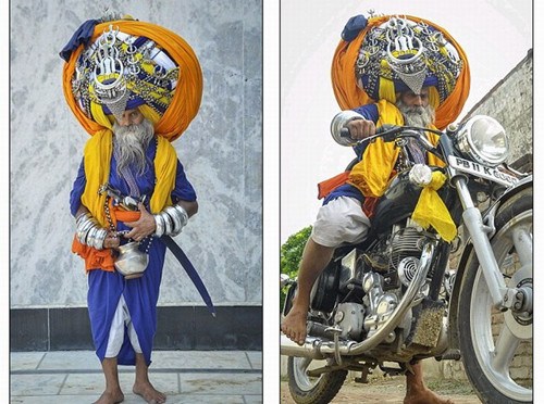 印度锡克教老人头巾重90斤 穿戴完毕需6小时(图)
