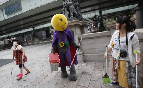 日本街头现紫披风“超人” 专攻清扫垃圾(图)