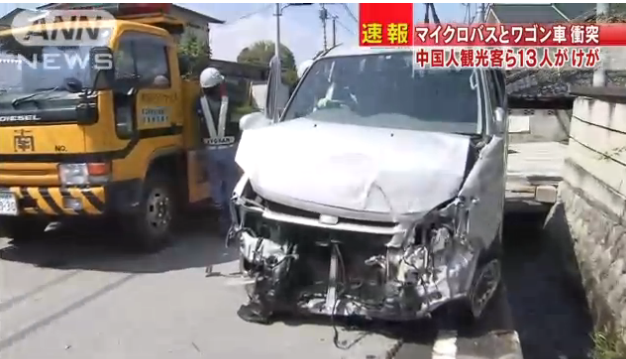 日媒称载中国游客小巴碰撞事故致1人重伤(图)