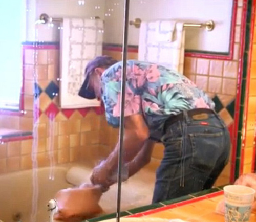 罗伯特正准备穿上“谢莉”的紧身外衣。(网页截图)