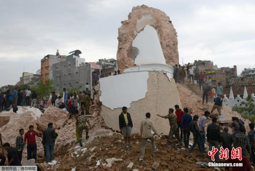 地震致尼泊尔古迹倒塌 恐50人被埋