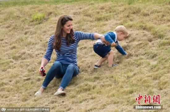 英国小王子乔治和妈妈凯特王妃一起,小王子欢脱的在草坪上打滚玩耍。图片来源:CFP视觉中国