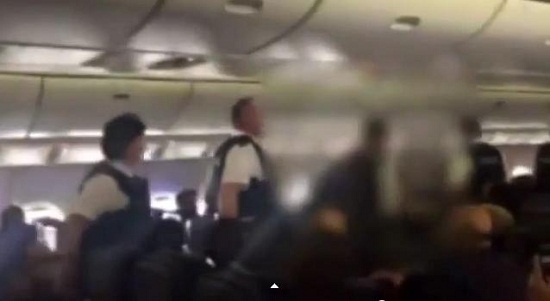 一名男子因大闹航班导致飞机中途降落,图为机内拍摄的视频。