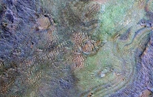 ——巨型火山遗迹。欧洲航天局的“火星快车”号在火星北部“阿拉伯高地”(Arabia Terra)的Siloe Patera地区拍下照片,显示火星可能在30亿年前发生大规模火山喷发,火山灰和岩浆涌出地面,留下诸多痕迹。