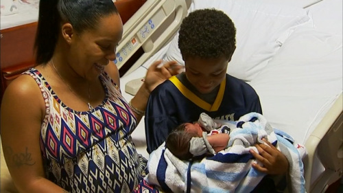 11岁的男童詹姆斯遇事不慌乱,遵从医护人员的指示,帮助早产的妈妈顺利接生弟弟。